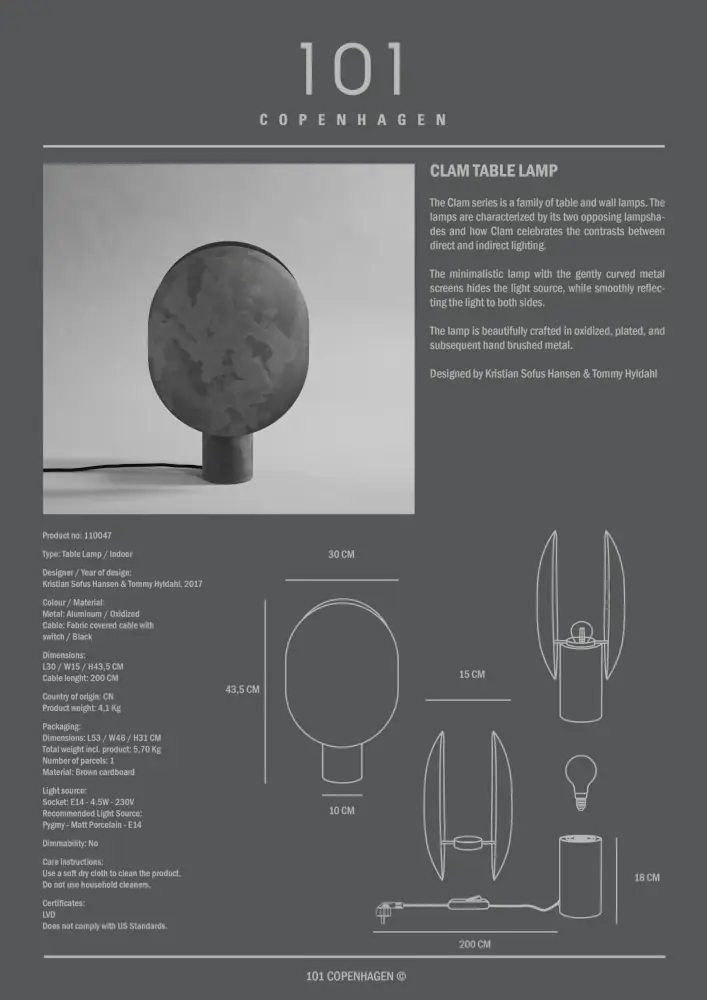 Visit Urbansuite to explore our collection of 101 Copenhagen products and discover how the Clam Table Lamp can transform your space. Our dedicated team is here to help you select the perfect pieces that reflect your personal style and meet your practical needs. Illuminate your home with the modern elegance and functionality of 101 Copenhagen, available at Urbansuite.