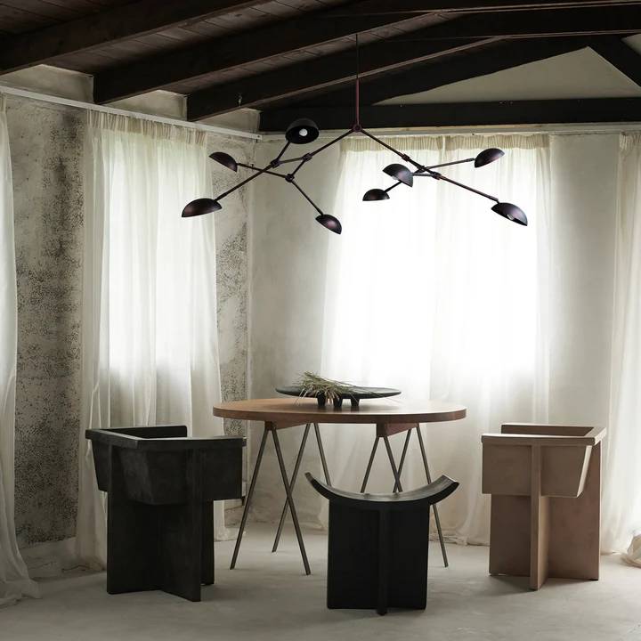The chandelier’s design includes a series of slender arms that extend outward, each supporting a beautifully shaped shade. These shades are designed to diffuse light softly and evenly, creating a warm and inviting ambiance. The minimalist and organic design of the Drop Mini Chandelier allows it to blend seamlessly with various decor styles, adding a touch of modern elegance to any space.