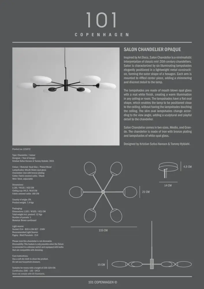 Visit Urbansuite to explore our collection of 101 Copenhagen products and discover how the Salon Grande Chandelier can transform your space. Our dedicated team is here to help you select the perfect pieces that reflect your personal style and meet your practical needs. Illuminate your home with the modern elegance and functionality of 101 Copenhagen, available at Urbansuite.
