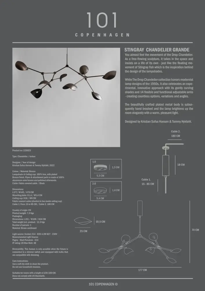 - 101 Copenhagen Design: Part of the innovative 101 Copenhagen collection, the chandelier showcases the brand’s commitment to quality craftsmanship and contemporary design.