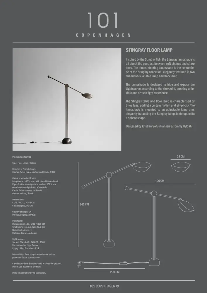 Visit Urbansuite to explore our collection of 101 Copenhagen products and discover how the Stingray Floor Lamp can transform your space. Our dedicated team is here to help you select the perfect pieces that reflect your personal style and meet your practical needs. Illuminate your home with the modern elegance and functionality of 101 Copenhagen, available at Urbansuite.