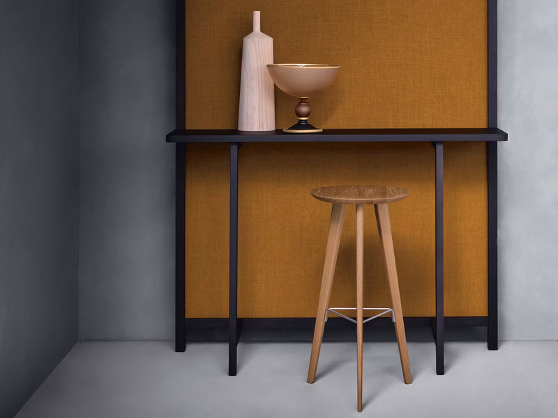 Frame in natural solid oak or Canaletto walnut. Footrest in satin finished stainless steel.
