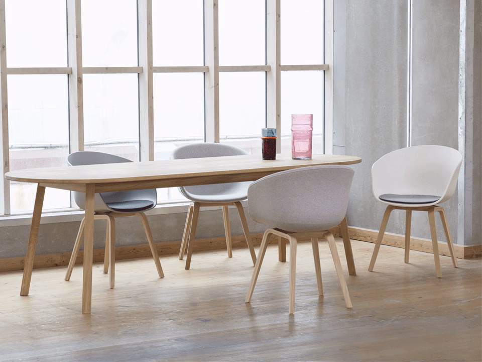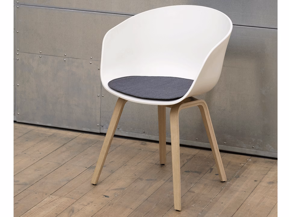 The About A Chair AAC22 design exudes the functional simplicity that is characteristic of this entire series. The solid shell comprises a curved back with armrests in polypropylene, providing excellent comfort and a soft, unified silhouette, while the four-legged wooden base adds a timeless, classic expression, ensuring greater stability and a longer lifetime. The extensive range of colours, upholstery options and wood choices for the frame and legs offer the opportunity to create almost infinite design combinations.