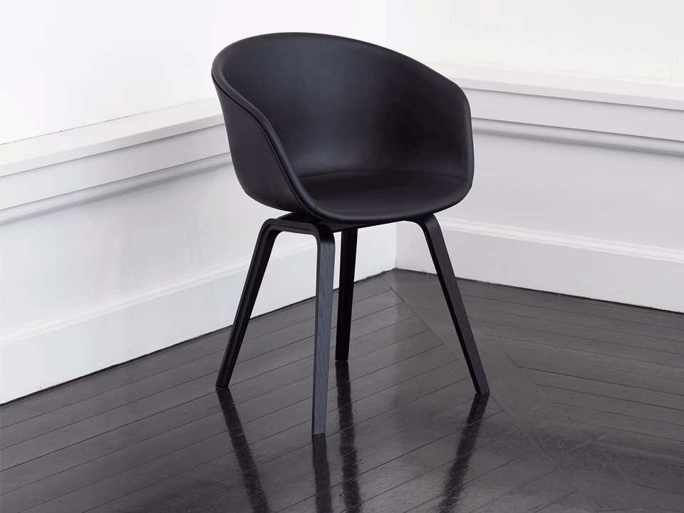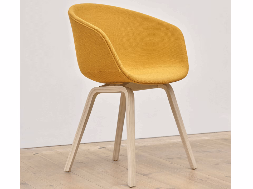 The About A Chair AAC 23 design exudes the functional simplicity that is characteristic of this entire series. The solid shell comprises a curved back with armrests in polypropylene, providing excellent comfort and a soft, unified silhouette, while the four-legged wooden base adds a timeless, classic expression, ensuring greater stability and a longer lifetime. The extensive range of colours, upholstery options and wood choices for the frame and legs offer the opportunity to create almost infinite design combinations.
