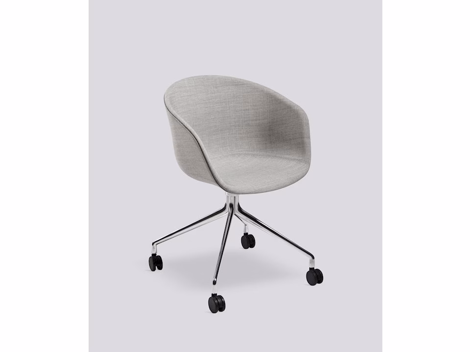 - Material: Injection moulded polypropylene shell with armrest and full upholstery with 10 mm foam. 4 star swivel base in cast aluminium with soft wheels for all floors. All black and polished bases have black wheels. All white bases have white wheels with grey rubber.