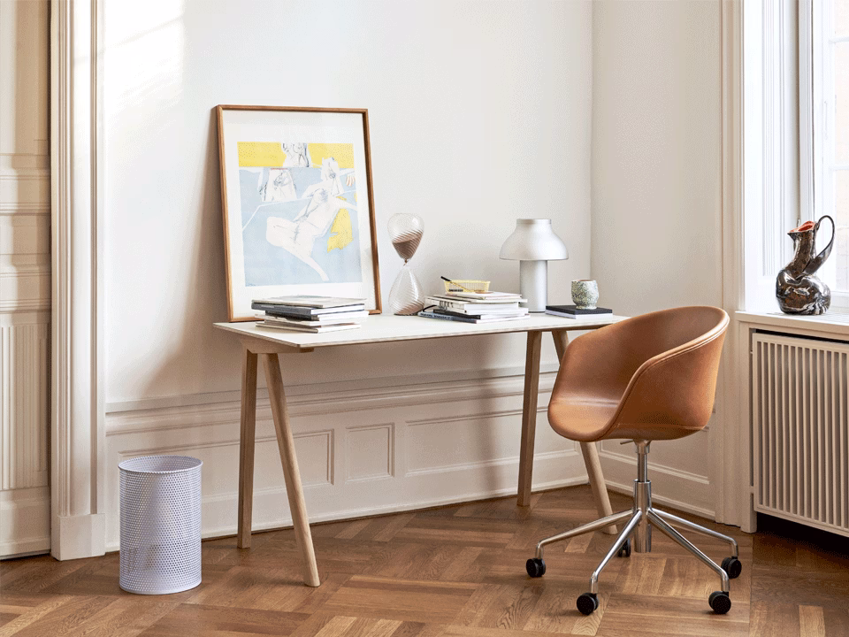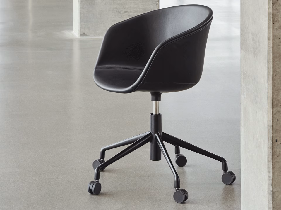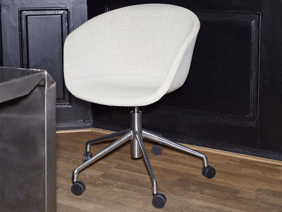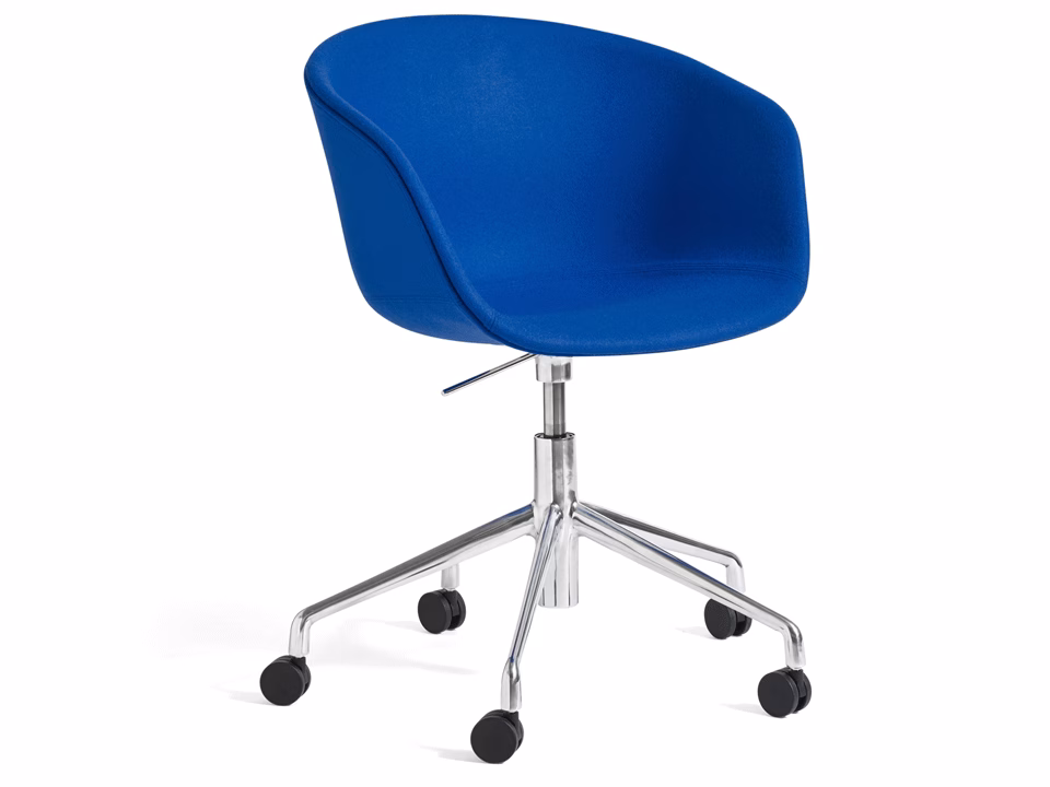 Perhaps the most functional chair of the series, the About A Chair AAC53 features a five-legged castor base equipped with a semi-automatic gas lift that can adjust the seat height from 42 to 56 cm. Just like the rest of the series, the aluminium base can be combined with the original, open seat or rounded shell to make the look as formal or relaxed as you like. A wide choice of colours and fabrics give you further options to adapt the chair to whatever environment you need.