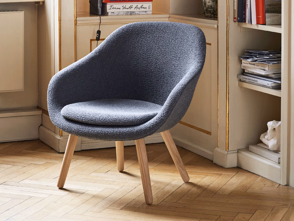 The About A Lounge Chair has a compact body with shaped armrests combined with round wooden legs. In line with the rest of the series, the sculpted design has been kept simple, with nothing left to chance. It is available in a low-backed version with a more intimate expression or a high-backed version with an open, spacious composition. The high-backed About A Lounge Chair is designed to create a cohesive look with the matching About an Ottoman, but it also functions perfectly on its own. The wide choice of cushions, legs and upholsteries mean you can configure unique combinations that fit a variety of public and private contexts. Optional seat cushion mounted with Velcro.