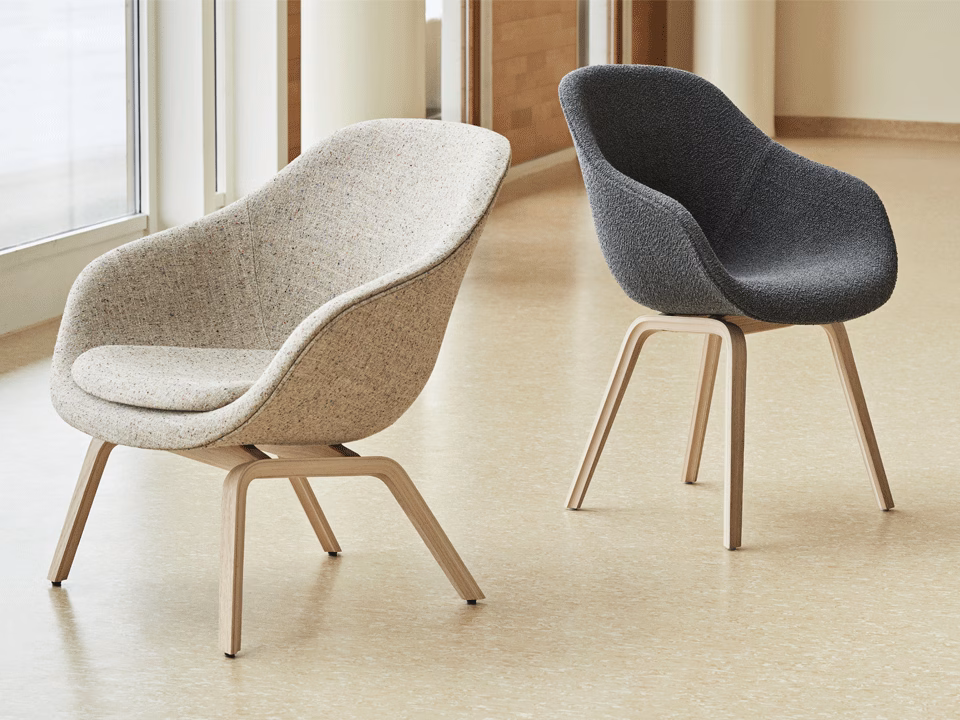 With a moulded plywood frame this version is offset by the minimalist wooden frame, creating a slightly more angular expression. It is available in a low-backed version or in a high-backed version with a more spacious feel. The wide choice of cushions, legs and upholsteries mean you can configure unique combinations that fit a variety of public and private contexts.