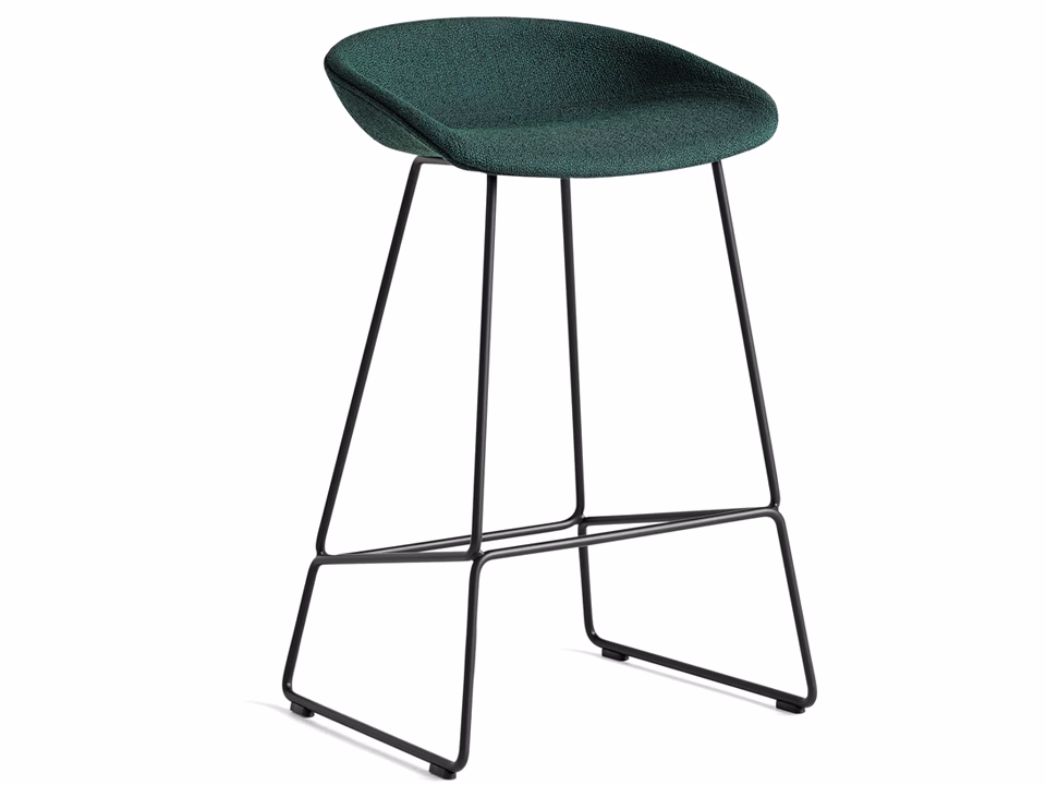 The bar stool About A Stool AAS39 has the same capacity for transformation as the other members in the series, ranging from a minimalistic plastic stool to a more full-bodied upholstered version. The curved backrest is balanced on an elegant rounded frame in metal, showcasing a more industrial design with a strong visual presence. Suitable for as using as a bar stool in bars and restaurants, as well as at home for informal meals. Available in two heights and in a wide range of metal finishes, colours and upholstery options.