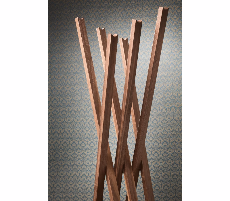 The modern wooden coat rack Oscar has a shape studied in every minute refined detail. The six slats in fine wood intersect with geometric precision. The essential, minimalist composition is enhanced by the excellent quality woodwork and the sophisticated base in natural Travertine. This refined design coat rack combines the warmth of wood with the rigour of geometry and is suitable for furnishing a living space, a bedroom or a walk-in closet.