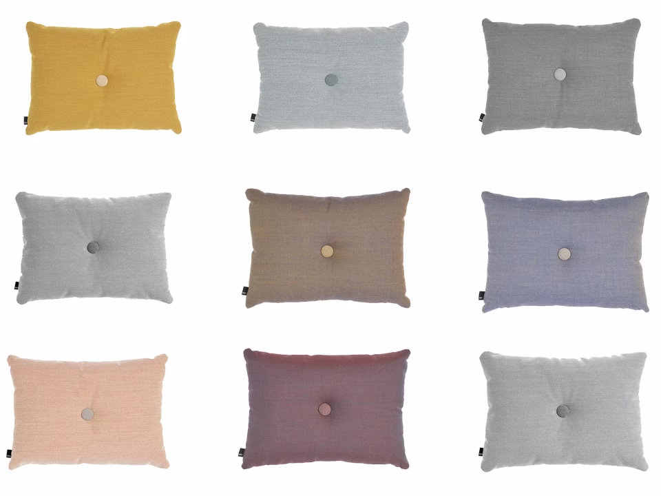 Characterised by the coloured covered buttons on the cushion, HAY’s Dot Cushion has become a design classic in many homes. This version is crafted in Kvadrat’s wool-rich blends, which offers a rich tonal range and texture, as well as superior durability. Available in two shapes, with one or two buttons. Dry clean only.