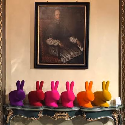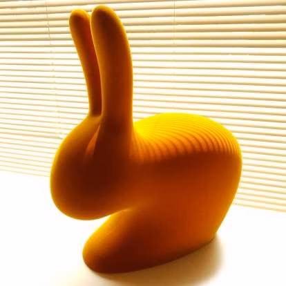 Everyone needs a friend who is all ears and here it is our baby Rabbit! Rabbit chair baby it’s the original Qeeboo rabbit-shaped chair in a smaller version, conceived for children’s fun. it can be used to sit leaning against the ears of the rabbit or on the opposite side, riding it and resting the forearms on his ears. Velvet surface softer to the touch.