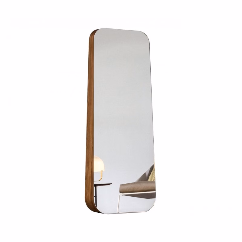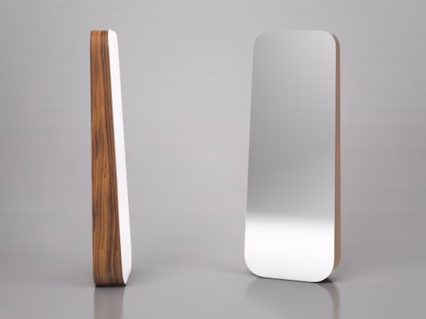 Obel is an important wall mirror that, thanks to its large reflective surface, allows the individual to play the starring role. The trapezoidal shape, consisting of a thin structure with blunt contours, has a wider thickness at the base, a narrower one at the top, giving movement to the whole. The wooden structure, which gives the mirror volume and richness, is available in three finishes: American walnut, natural ash-wood, grey ash-wood. Obel’s important size, as well as the rounded and sinuous profile, ensure a spectacular result, of great impact. Its monolithic presence, pure and slender, is able to multiply and decorate any space with lightness and sophistication: this is when usefulness is in perfect agreement with beauty.