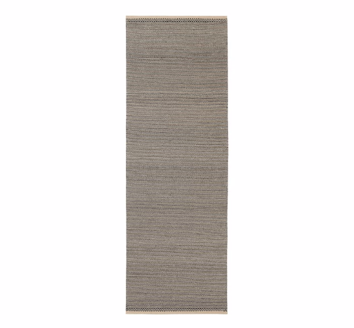The hand-woven Daisy rug in the high-quality New Zealand wool is the perfect choice for adding bold and sophisticated colours to the home. This design displays the delicate balancing act which is the epitome of designer Lisbet Friis style and skills. The colours ranging from warm black to burnt orange sienna and hay green are subdued with a depth of clarity, and the stripes are classic with a distinct sense of something new and refreshing. The edges have a playful finish with chequer effect.
