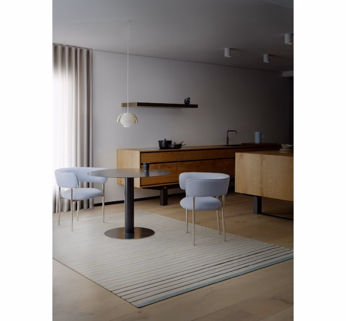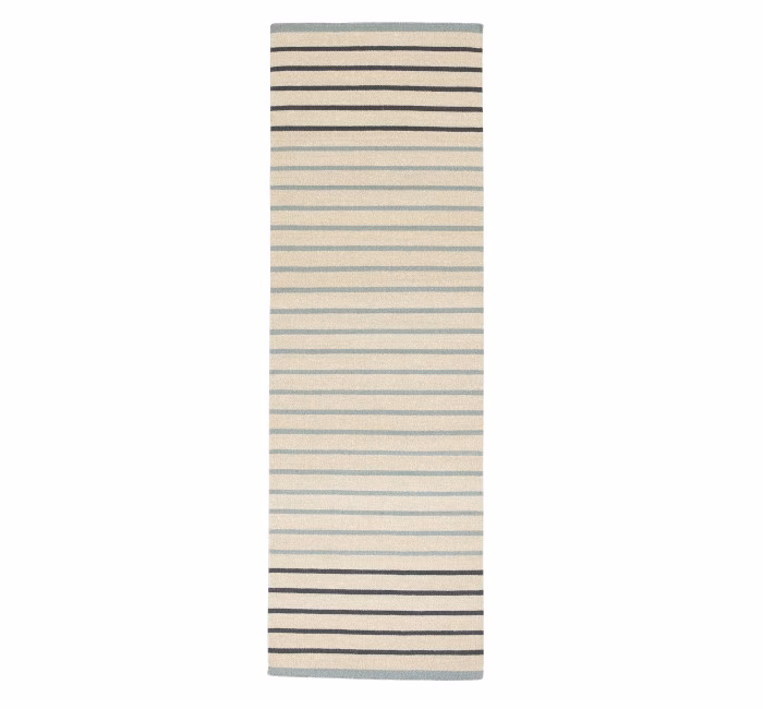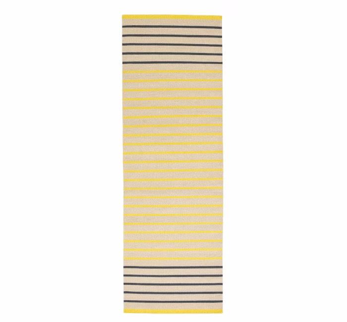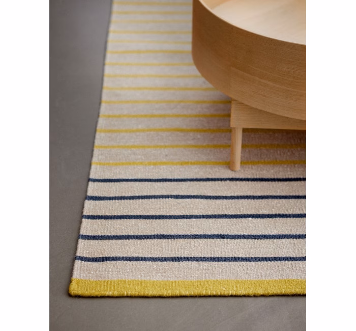 Fresh colour splashes of yellow, nude and soft blue mixed with beige bring a bit of fun to this thin and tight hand-woven rug in wool and linen. This design is fresh and lights up the room and the neutral base in all three colour variations makes sure it’s not too delicate and easy to look after