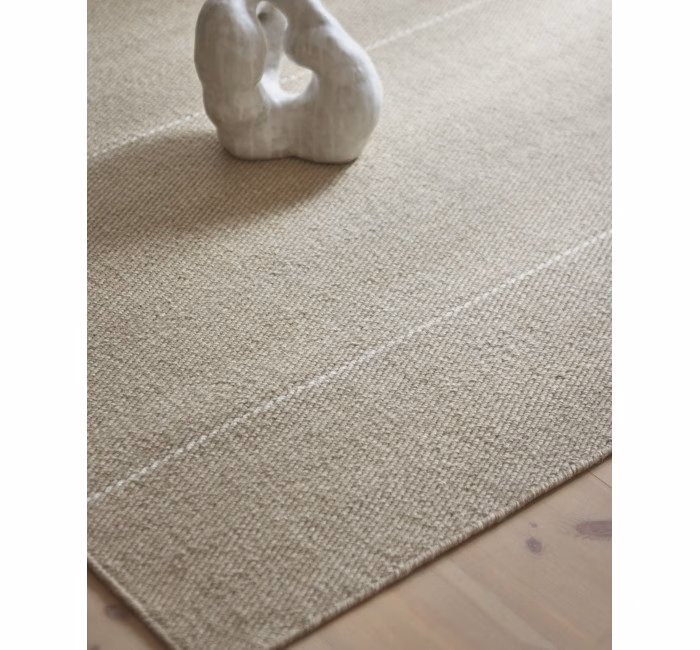 Just as the colours maintain natural and muted tones, the stripes in this design exhibit a vibrant yet softened look. This understated balance allows the Svalin rug to either assert itself or blend seamlessly into any decor. Hand-woven with New Zealand wool, the rug features a distinctive twisting technique that imparts both volume and resilience. The linen warp creates the slightly blurred stripes in the twill weave, while blends of soothing greys, beige, and sand hues subtly transform with the play of light and surrounding ambience.