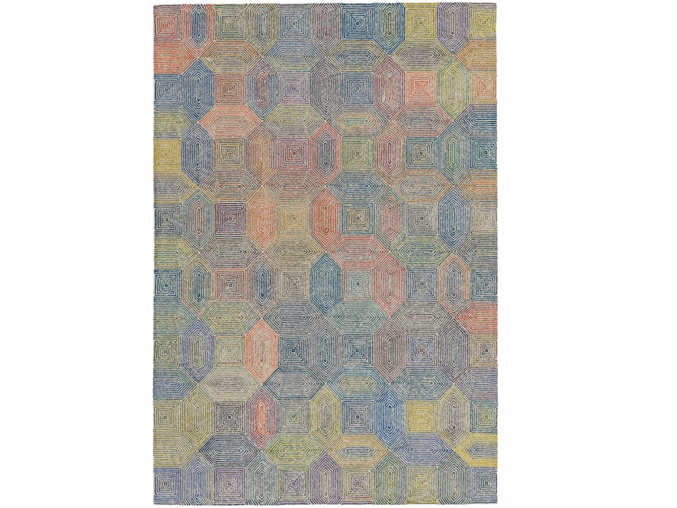Woven from a blend of pure New Zealand wool and viscose using a cut and loop method to create a textured look and feel, Camden is a contemporary collection featuring a colourful geometric design