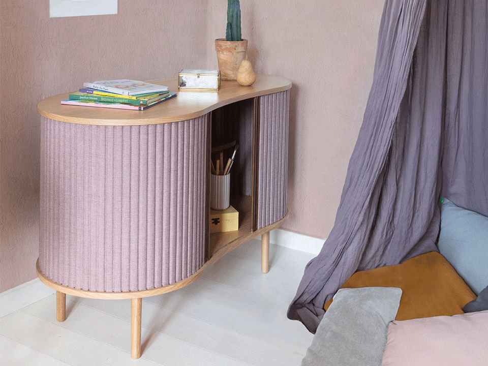 Its special tambour doors slide around the edge of the cabinet, letting you choose how much of the interior you want to put on show. Change the position of the sliding doors to create new displays and uses.