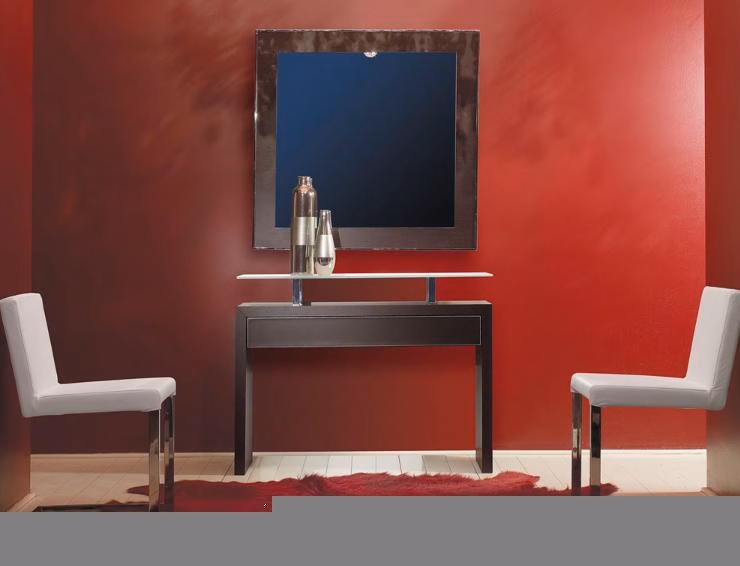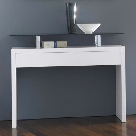 Console with wooden frame, clear fume, shining painted, matt satined painted, extralight glass top