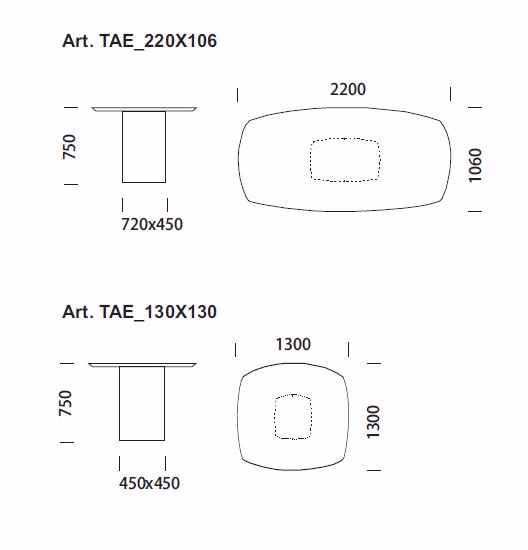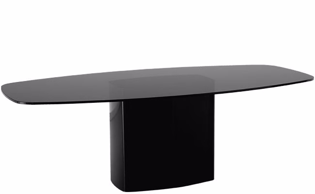 Glossy white lacquered mdf top, thickness 30 mm with chamfered edge, or smoke grey tempered glass top, thickness 12 mm with chamfered edge. |