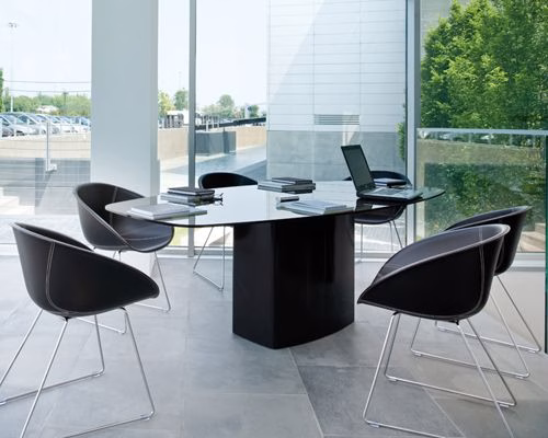 | Aero table, glossy white or black lacquered steel base.
