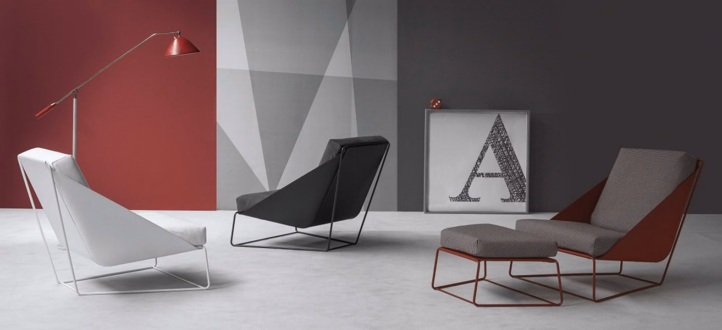 The frame is available in painted metal in matt anthracite grey, white, red, chromed or black nickel.