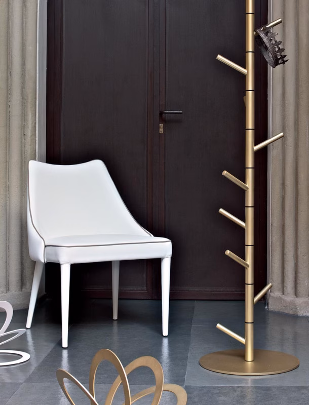 Lacquered metal coat hanger with adjustable hooks in various colours.