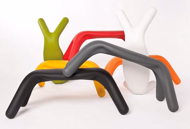 Atlas bench has unusual round and natural forms. Available in numerous light hearted colours, this bench brings animation to your terraces and gardens.