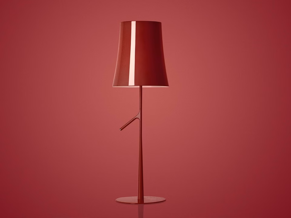 A reinterpretation of the classic lampshade-lamp with a contemporary twist, the Birdie table lamp diffuses direct light downwards and suffused light into its surroundings. The touch-dimmer on/off mechanism is designed like a branch ready for a bird to roost, hence the name.