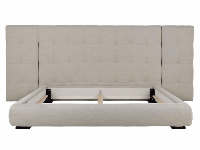 Bed in 3 sizes. Upholstered frame and headboard. Headboard available in standard and extra high (denoted by XH). Headboard width can be extended with the addition of side panels. Wooden slats. Upholstery available in a choice of fabrics and leathers. Legs available in a range of finishes. Please contact store for more details.