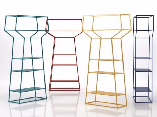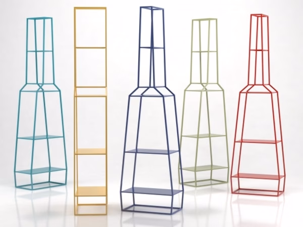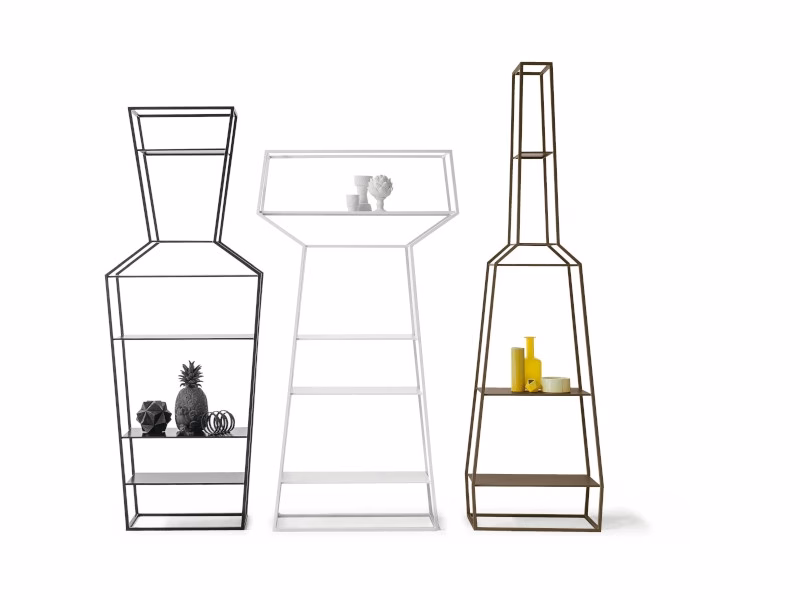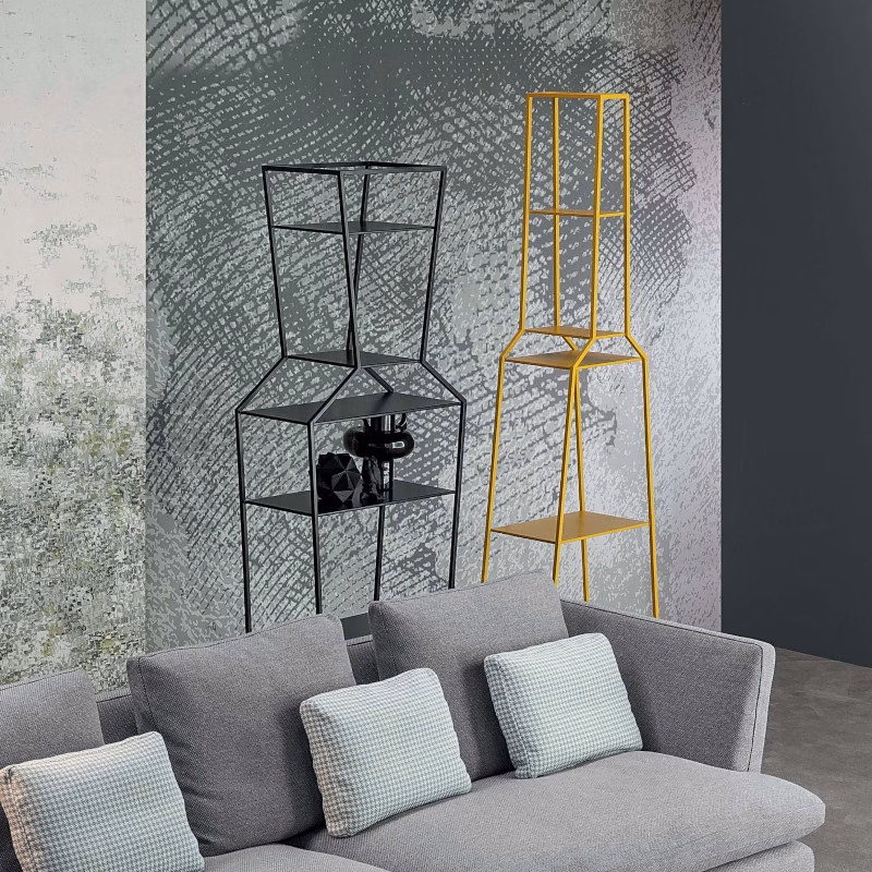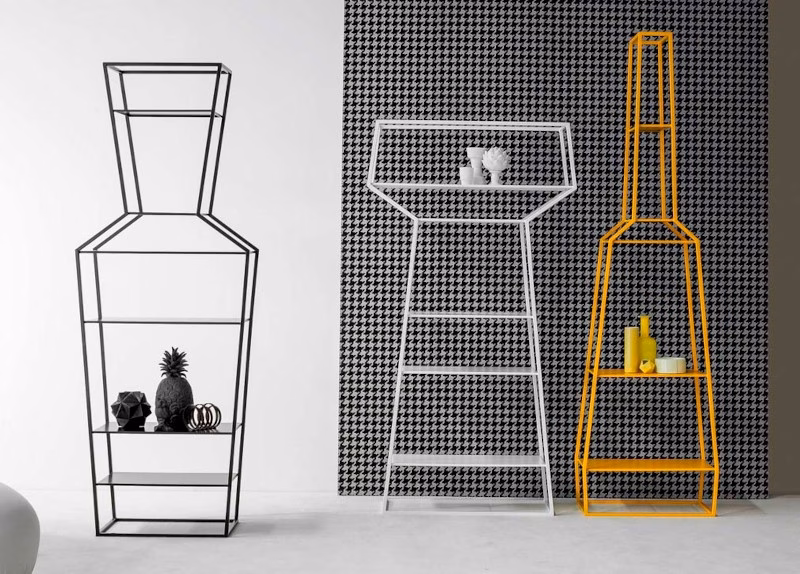 Produced in Italy, both the frame and the shelves are made of matt painted metal available in the following colours: black, white, saffron yellow, red, blue, green or anthracite grey.