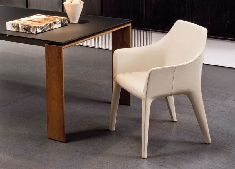 Elegant, imposing upholstered chair, available with and without armrests.