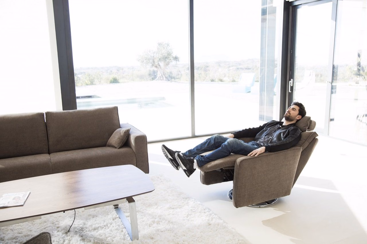 Bonne is the perfect armchair to combine with model Boston, as they share their natural lines and curves and their calmed design. However, Bonne is not a conventional recliner; we have succeeded in raising comfort to infinity, thanks to its new headrest adjustable both in height and inclination which adapts to everyone regardless of height or complexion, and to its high resting position which favours a good resting heart position.