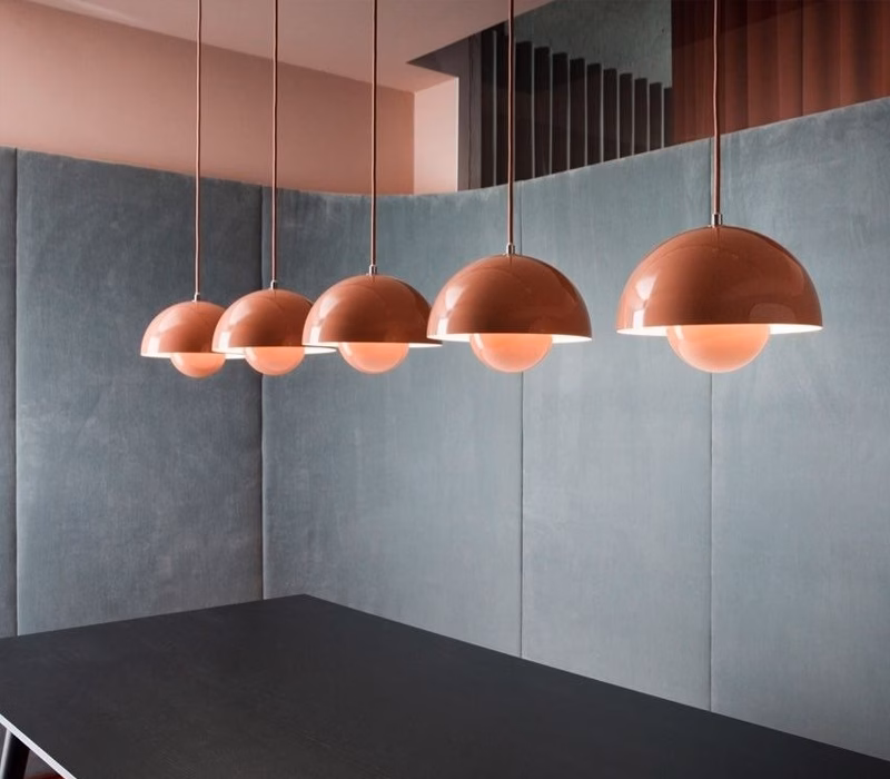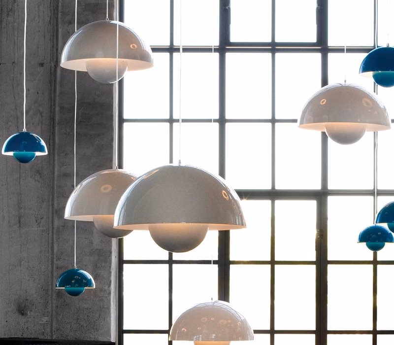 The Flowerpot, a vividly coloured lamp with a rounded pendant that hangs from the semi-domed upper shade, embodies the experimental attitude that Danish designer Verner Panton took to basic home items.