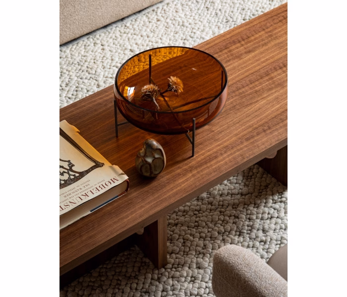 Imagined by Norwegian architect and designer Danielle Siggerud for Audo’s former showroom café, the Androgyne Collection profiles simple silhouettes and refined materials. A monumental design crafted from kunis breccia stone, marked by characteristic veins and mineral fragments in warm hues, the Androgyne Lounge Table continues the simple silhouette of the collection while introducing natural materials and a shape and function made for everyday settings. The versatile design makes it possible to use as both a lounge table or bench for piles of books or statement decorations