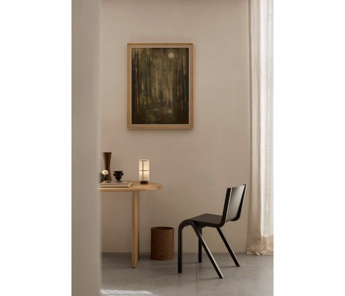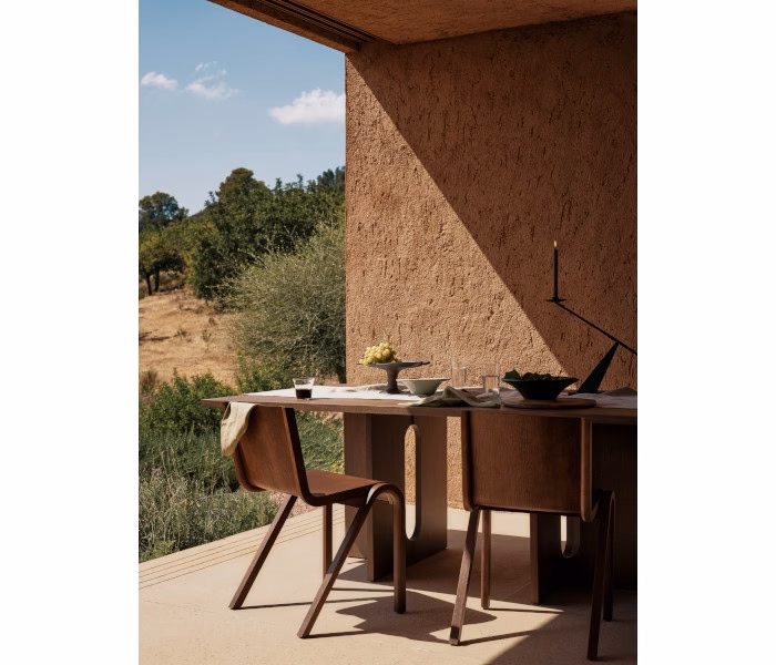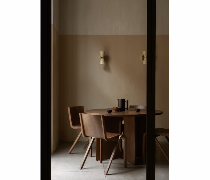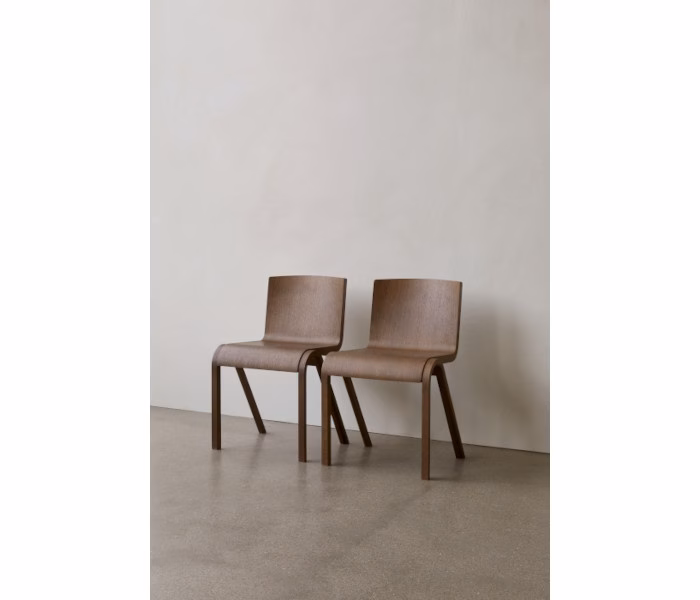 The result of a study of the possibilities of form-pressing techniques, Ready Chair, created for Audo by Matias Møllenbach and Nick Rasmussen, takes its cues from classic free-swing chair designs, its cantilevered seat and backrest appearing as if suspended on air. Available in oak veneer, it comes with a natural or red stained oak finish and with the option of an upholstered seat and back. Perfectly sized for use as a dining chair, its stackable design and row-connecting feature make it equally suited to a multitude of other uses
