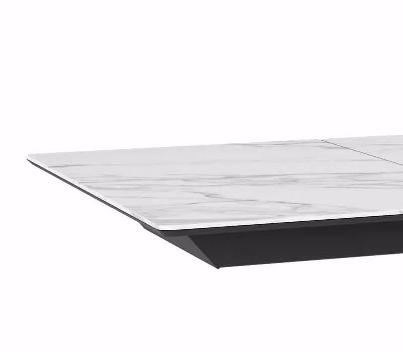 The Art table is the expression of a clear and rational design intuition, like the geometric shape which inspired designer Gino Carollo. A metal trapezium develops diagonally under the table top, allowing minimum obstruction and optimising the space. To ensure stability, the trapezium is supplemented with two legs which can be customised with inserts in the same finish as the table top. The base of the Art table is in metal; the table top in the fixed (rectangular, round or rectangular with rounded corners) or leaf version – is available in wood, glass, ceramic or marble.