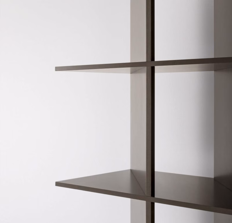Illusion is a modular wooden bookcase inspired by early 20th century Italian rationalist architecture.