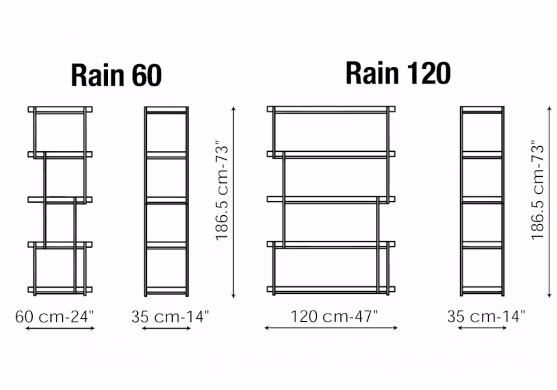 Rain is a bookcase which stands out for its fine game of visual perspectives.