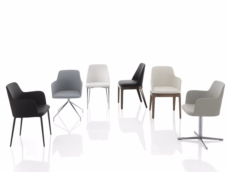 - Material: Chair with lacquered or chrome Metal frame, shell upholstered and covered in Eco Leather, Mambo and Lulù fabric, Waterproof Nabuk, Waterproof printed Nabuk, Pure Virgin Wool, Velvet, Decò fabric and Premium Nappa Leather.