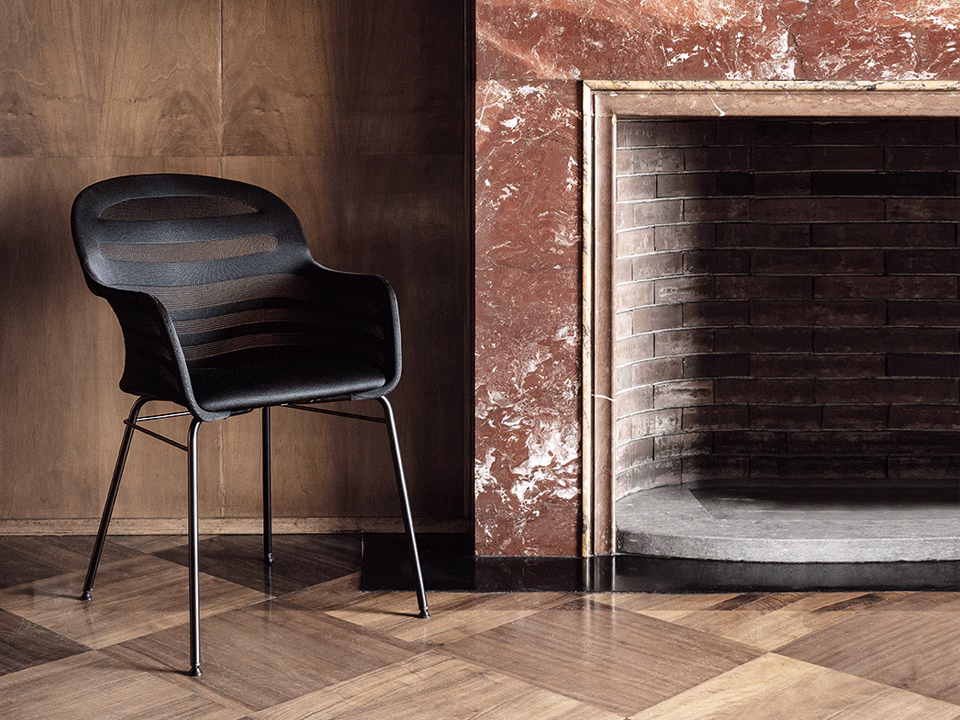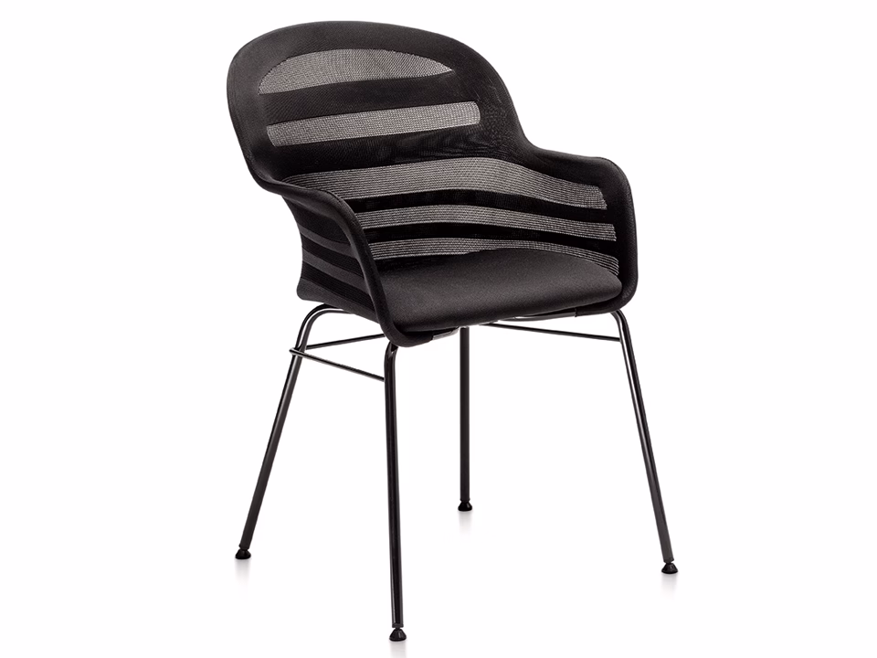 - Material: Chair with arms in lacquered Metal frame (rounded legs).