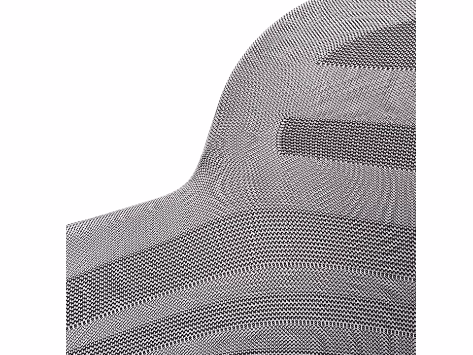 Back in elastic fabric with patterned net and Seat upholstered and covered in elastic fabric with uniform net or Eco Leather.