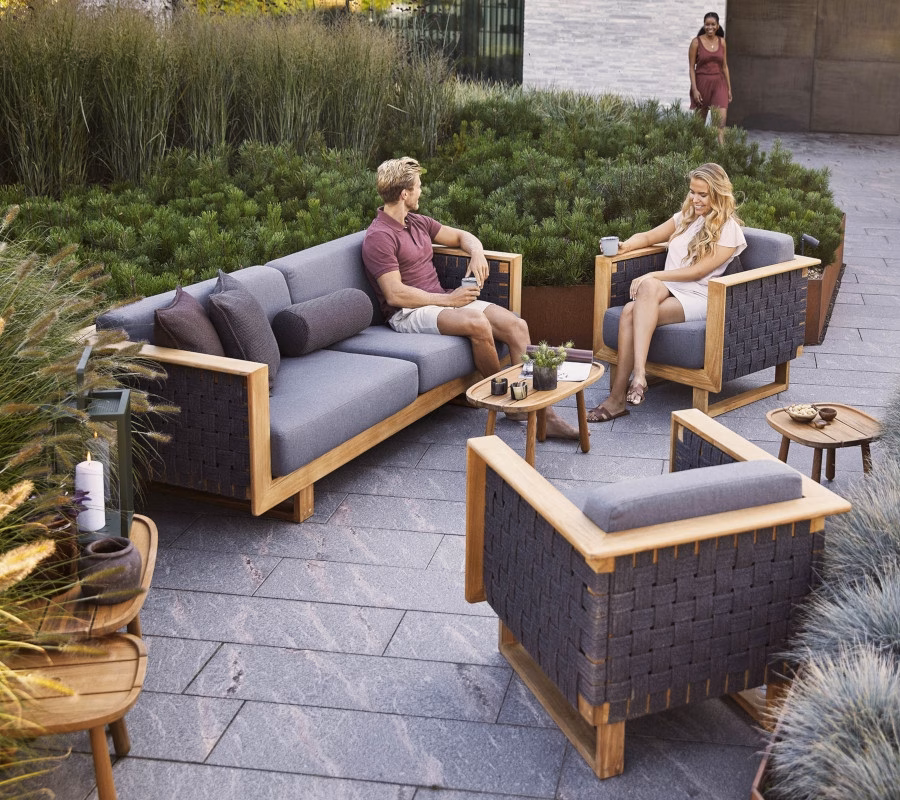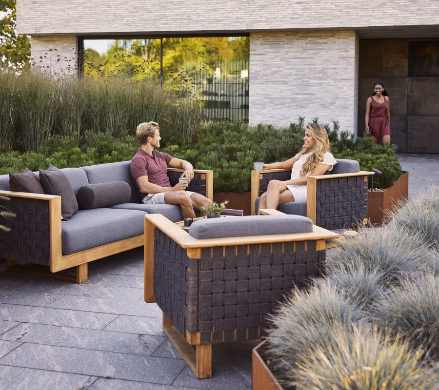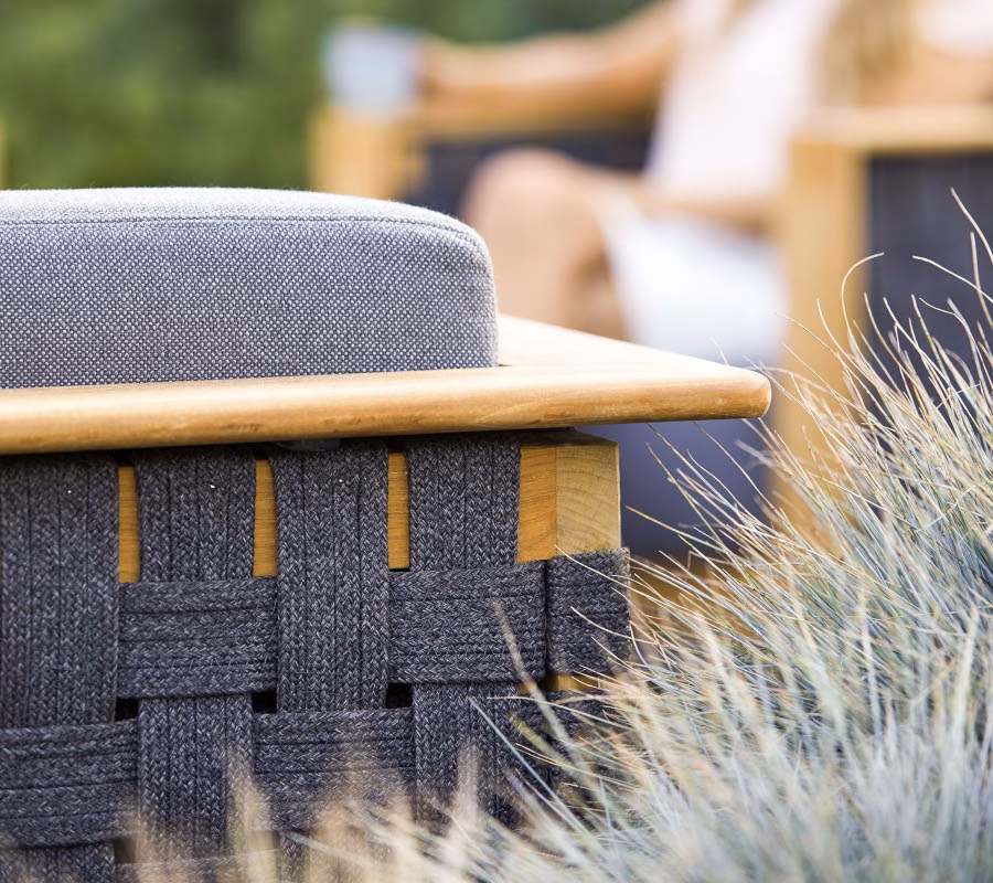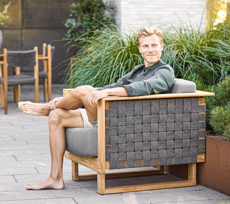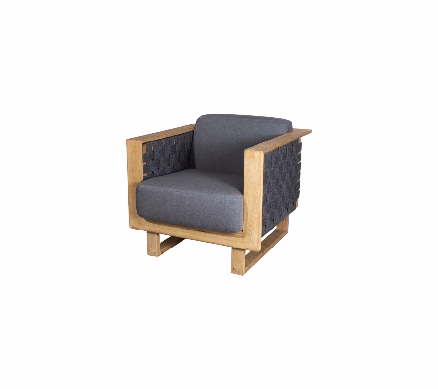 The distinctive lounge chair frame is made from the finest teak on the market. The pattern on the sides is hand-weaved in Cane-line Soft Rope. The combination of the warm teak frame and the soft Cane-line Soft Rope provides a refined exclusive look. Cane-line’s popular QuickDry & Airflow system helps to ensure that the cushions dry quickly after a downpour.