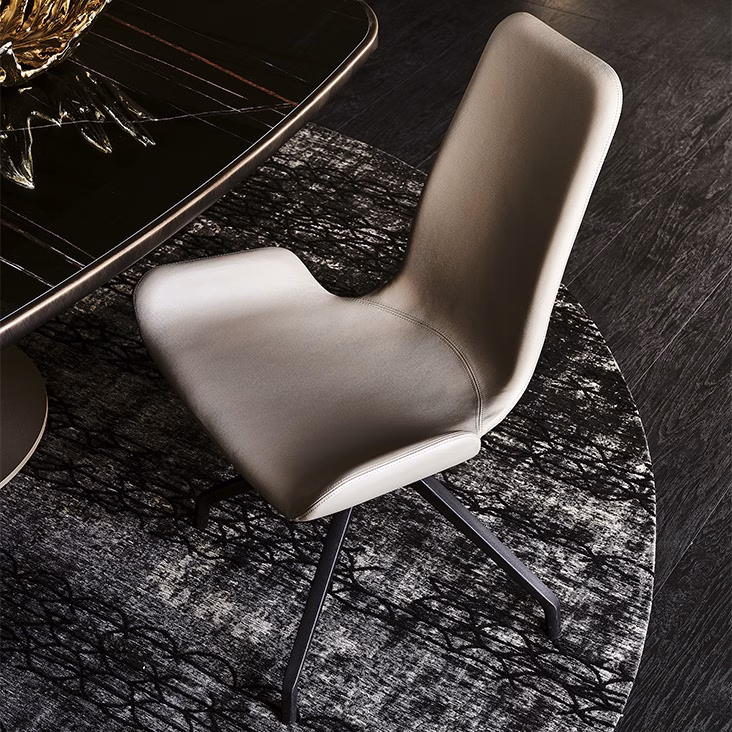 Swiveling chair with 4 spokes base (401-T) in graphite, white or black nylon. Cover in fabric, synthetic nubuck, micro nubuck, synthetic leather or soft leather as per sample card. The cover is not removable.