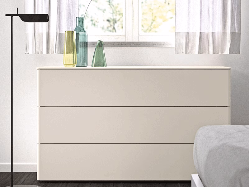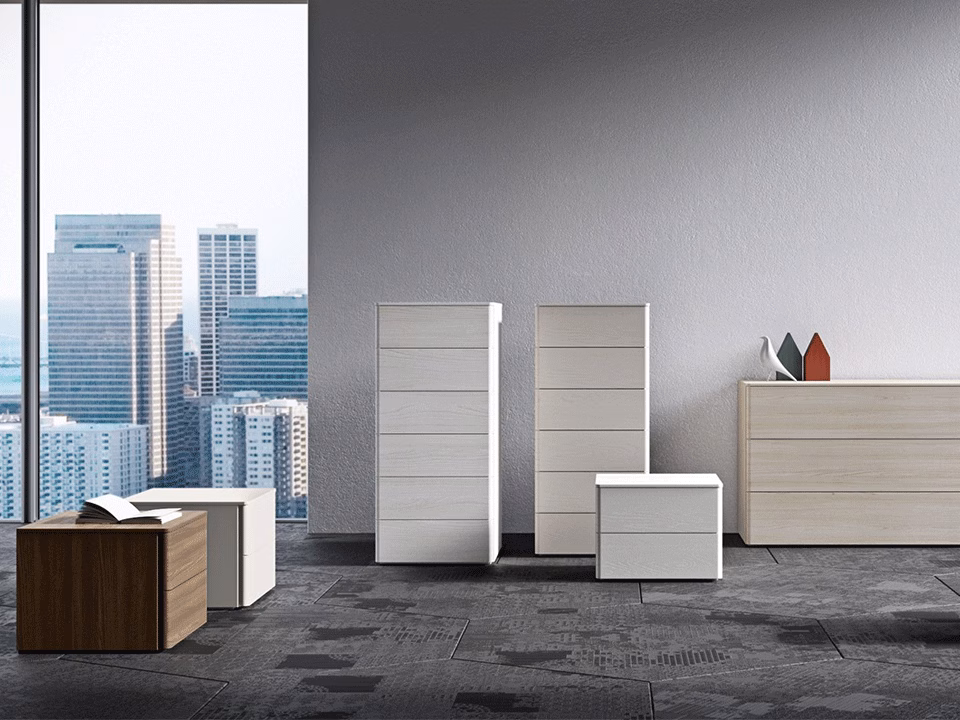 The distinctive rounded lines define the Londra collection, available in olmo shade, nuvola, frassino perla, frassino juta, olmo nordico and tabacco finishes with a side profile for opening drawers available in the bianco or bronze finish. The collection includes chests of drawers, bedside table and tallboy.