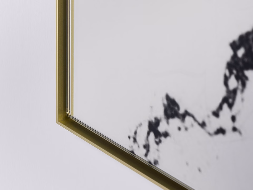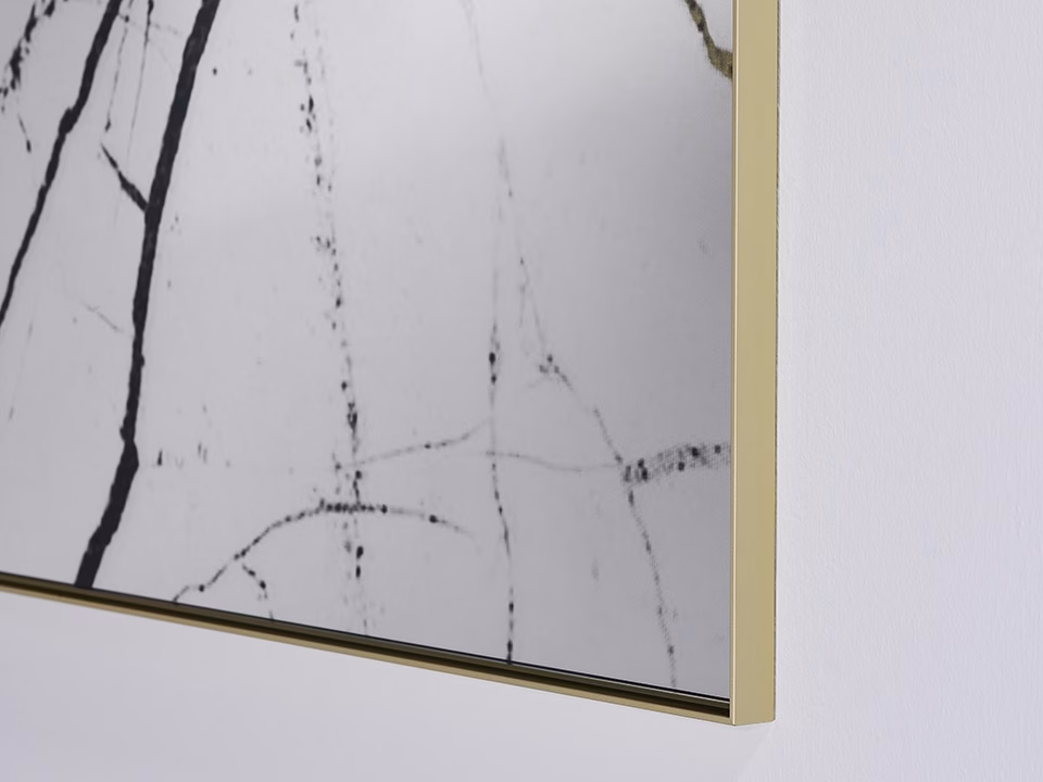 - printed and mirrored glass + gold metal frame