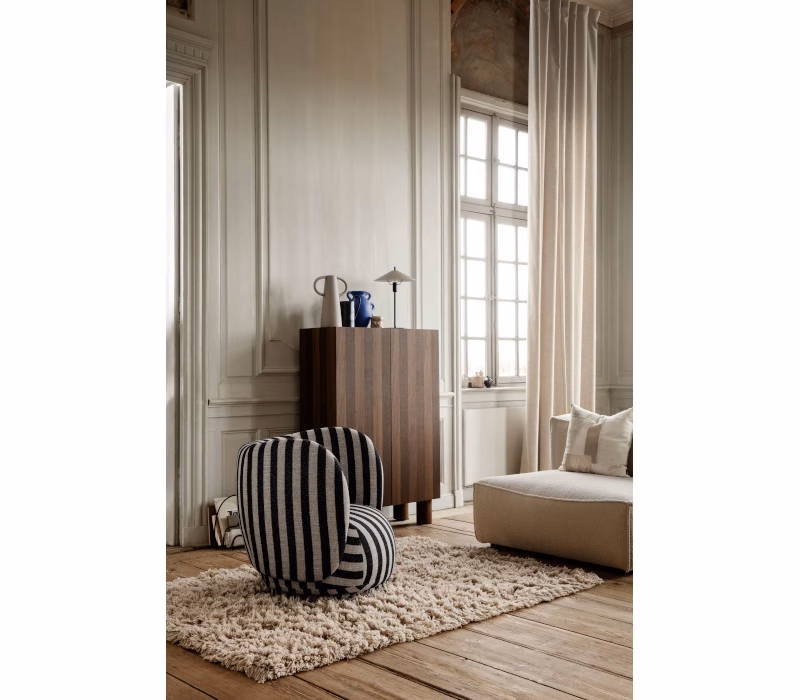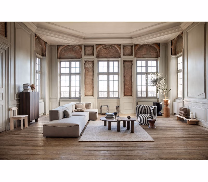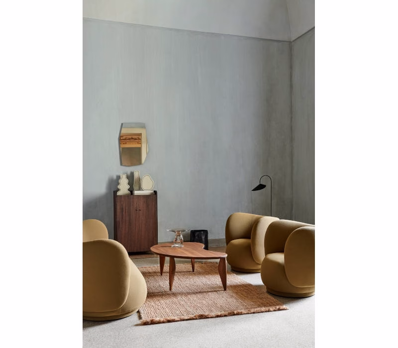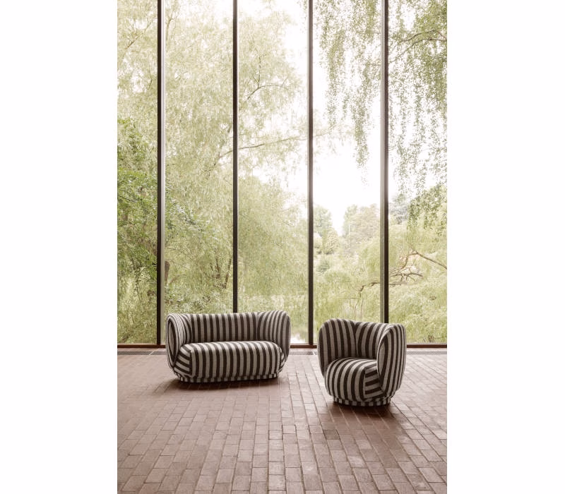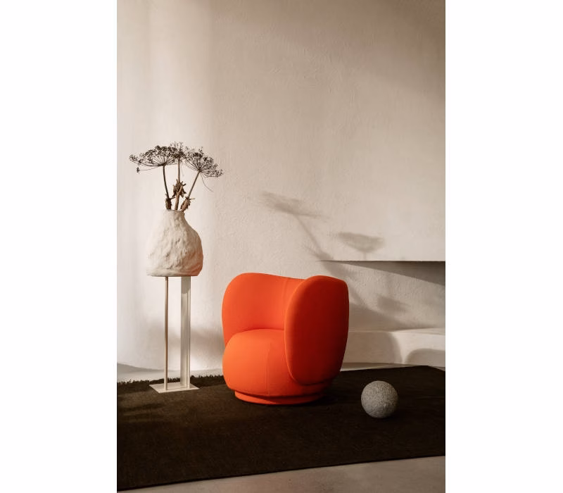 The Rico series welcomes curves and volumes into a classic design defined by soft lines and an embracing expression. Contrasting the sturdiness of the frame, the armchair has an upholstery of timeless, yet easeful wool bouclé fabric, which is woven of uneven yarn to attain the rich, loopy texture of the surface. The curvaceous nature of the series adds a modern union of comfort and elegance to any room and makes you feel drawn into its motherly embrace.