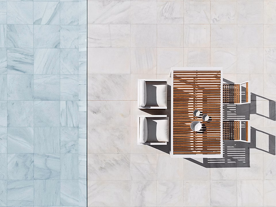 DNA is an outdoor furniture collection inspired by the Mediterranean lifestyle and contemporary architecture. Part of a collection of exquisitely crafted outdoor furniture in solid teak, Perfect for long summer evenings outdoors, or a striking statement in you dining room