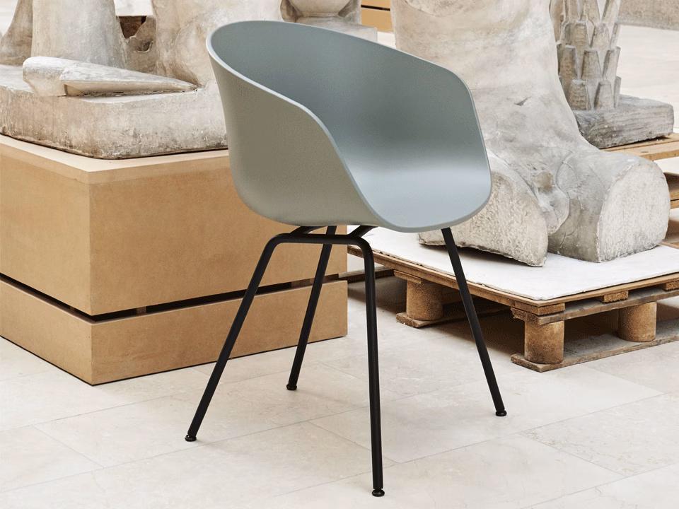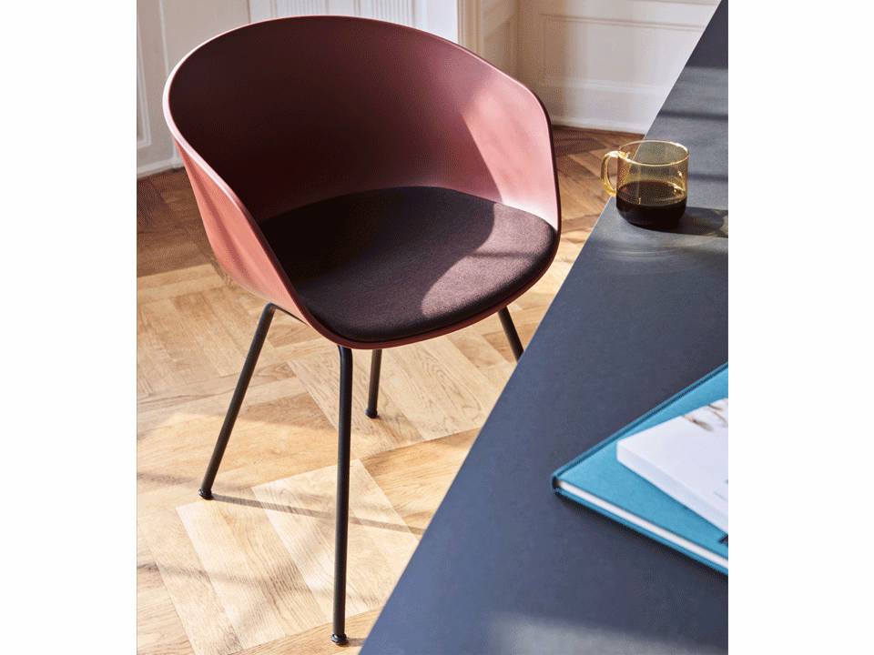 AAC26 has a 4 legged base in polished or powder coated steel, which gives the chair a more formal expression. The shell is available in different colours.