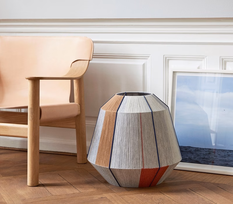 Inspired by her drawings, Ana Kraš’ Bonbon Lamps are hand-woven using an original weaving technique to create textured, one-of-a-kind pieces. In her lampshade collaboration with HAY, she uses the same idea of wrapping cotton-wool yarn around powder-coated steel frames to create individual lampshades that vary slightly in their appearance and texture.